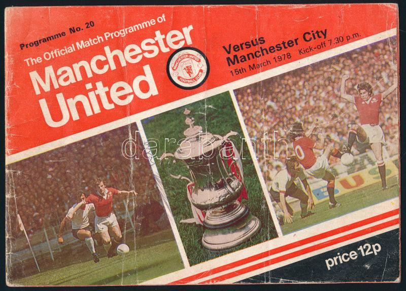 1978 Manchester United - Manchester City (2:2) angol labdarúgó-mérkőzés hivatalos programfüzete, 1978. márc. 15., kisebb gyűrődésekkel, kopásnyomokkal, tanúsítvánnyal / Manchester United v. Manchester City (2-2) official match programme, 15th March 1978, with slight wear and creases, with certificate