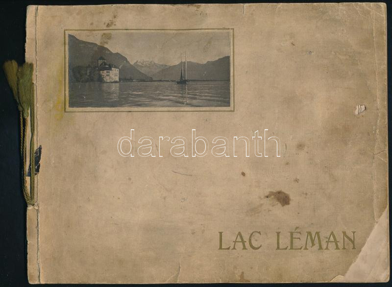 Beschreibung: cca 1920-1930 Lac Léman (Genfi-tó, Svájc), album 33 fekete-fehér képpel (+ 1 térképpel), zsinórfűzéses papírkötésben, foltos, sérült borítóval, 25,5x20 cm