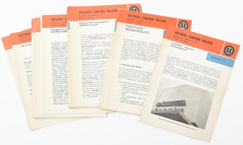 Beschreibung: cca 1975-1980 Országos Szakipari Vállalat építőipari termékeit ismertető prospektusok, kb. 30 db, jó állapotban, 19,5x14 cm