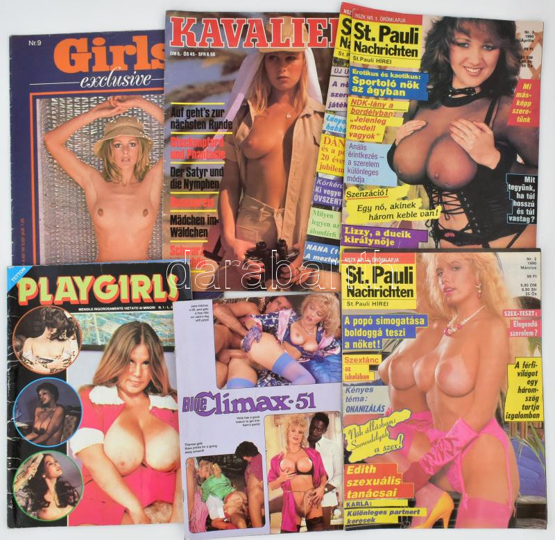 cca 1980-1990 Vegyes külföldi pornó magazin gyűjtemény, 7 db. Változó ... https://www.darabanth.com/de/454-Fernauktion/454.0/Kunst-Dokumente-andere-Sammelgebiete/Drucksachen~1500012/cca-1980-1990-Vegyes-kulfoldi-porno-magazin-gyujtemeny-7-db-Valtozo-allapotban-kozte-sza~II3027844