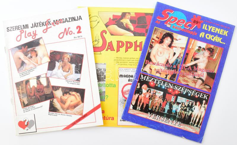 cca 1990-1994 Vegyes pornó magazin tétel, 3 db, közte Play Eros No. 2.... https://www.darabanth.com/de/454-Fernauktion/454.0/Kunst-Dokumente-andere-Sammelgebiete/Drucksachen~1500012/cca-1990-1994-Vegyes-porno-magazin-tetel-3-db-kozte-Play-Eros-No-2-Speci-3-evf-14-sz-S~II3027916