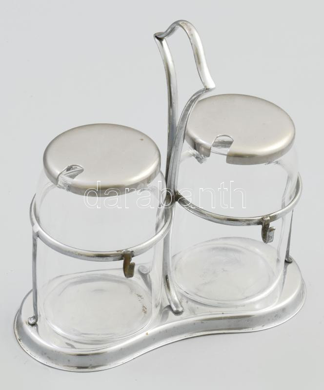 Asztali cukor és kakaó kínáló. Kanál nélkül. Üveg, fém. 20x22 cm https://www.darabanth.com/de/454-Fernauktion/454.0/Kunst-Dokumente-andere-Sammelgebiete/Flohmarkt~500014/Asztali-cukor-es-kakao-kinalo-Kanal-nelkul-Uveg-fem-20x22-cm~II2961152