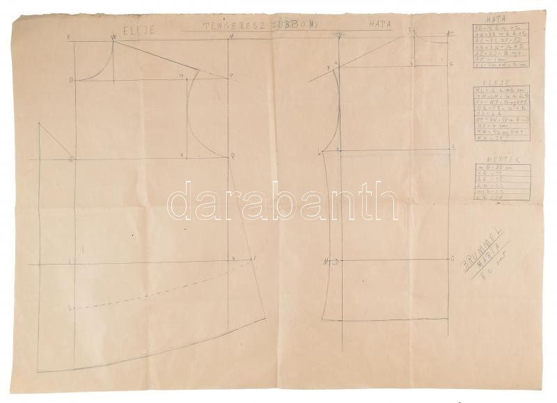 Beschreibung: 1917 tengerész zubbony kézzel rajzolt terve, 3 db, 63x90 cm (2 db) és 71x96 cm (1 db)