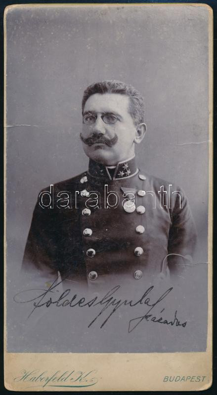 cca 1900 Földes Gyula százados aláírt kabinetfotója Haberfeld budapest... https://www.darabanth.com/de/454-Fernauktion/454.0/Kunst-Dokumente-andere-Sammelgebiete/Militaria~1500008/cca-1900-Foldes-Gyula-szazados-alairt-kabinetfotoja-Haberfeld-budapesti-mutermebol-11x21-cm~II3025783