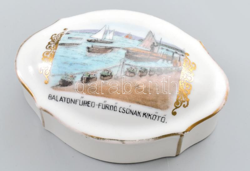 Zsolnay bonbonier, Balatonfűred-Fűrdő Csónak-kikötő. felirattal és bal... https://www.darabanth.com/de/454-Fernauktion/454.0/Kunst-Dokumente-andere-Sammelgebiete/Schiffe-Plattensee~1500006/Zsolnay-bonbonier-Balatonfured-Furdo-Csonak-kikoto-felirattal-es-balatonparti-latkeppel-~II3025923