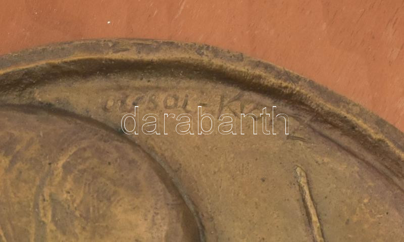 Beschreibung: Olcsai Kiss Zoltán (1895-1981): Cervantes. Bronz egyoldalas plakett fa lapra applikálva, fa lapon sérüléssel. Plakett d: 15,5 cm, fa lap 24x20 cm
