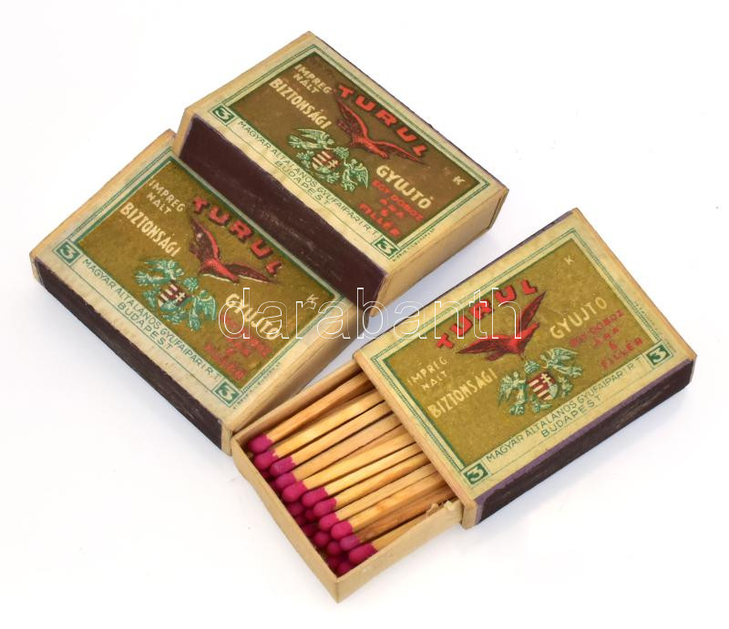 3 db Turul biztonsági gyújtó, tele gyufával https://www.darabanth.com/de/454-Fernauktion/454.0/Kunst-Dokumente-andere-Sammelgebiete/Streichholzer-Etikett~1500002/3-db-Turul-biztonsagi-gyujto-tele-gyufaval~II3024644