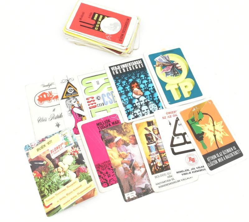 54 Db kártyanaptár vegyes állapotban 1971-től 1997-ig. https://www.darabanth.com/de/454-Fernauktion/454.0/Kunst-Dokumente-andere-Sammelgebiete/Werbungen~2000024/54-Db-kartyanaptar-vegyes-allapotban-1971-tol-1997-ig~II2983603