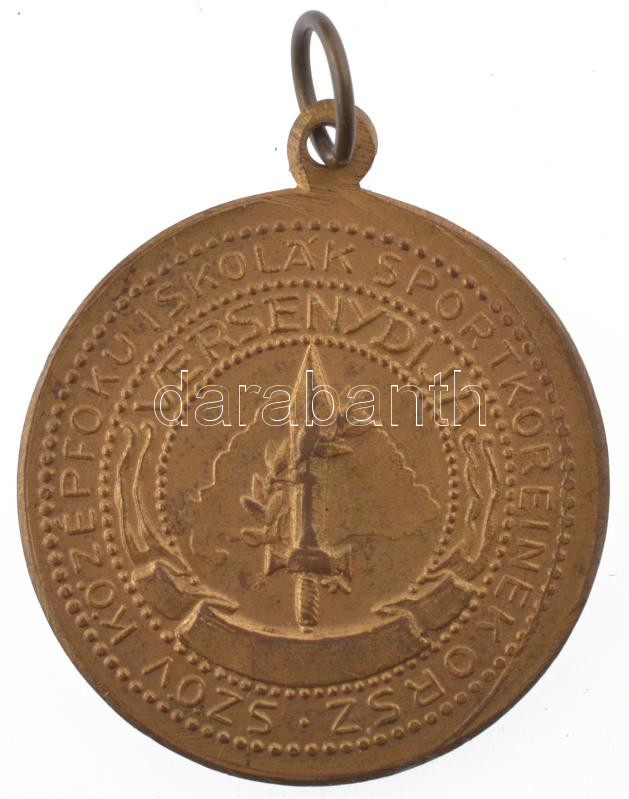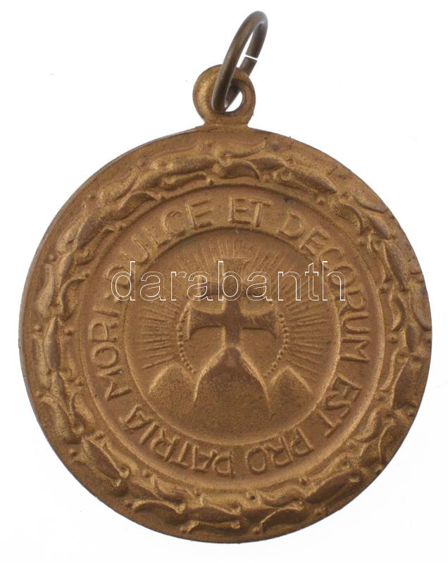 ~1930. "Középfokú Iskolák Sportköreinek Országos Szövetsége versenydíja / Dulce et decorum est pro patria mori" aranyozott bronz irredenta díjérem arany fokozata füllel (30mm) T:AU