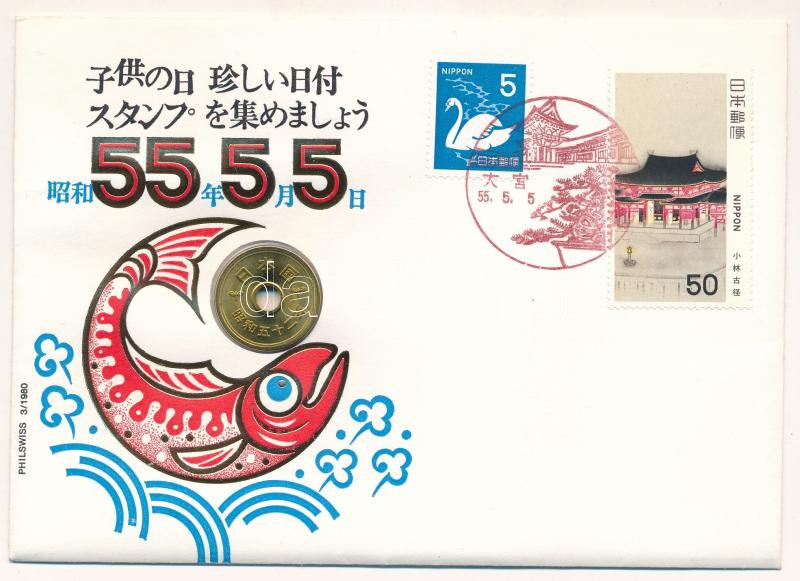 Beschreibung: Japán 1977. 5Y érmés borítékban, bélyegekkel és alkalmi bélyegzéssel T:UNC Japan 1977. 5 Yen in coin envelope with stamps and cancellation C:UNC