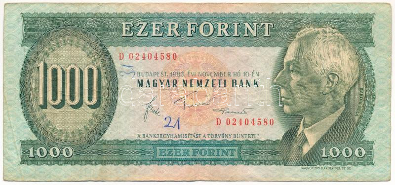 Beschreibung: 1983. november 10. 1000Ft "D 02404580" T:F
