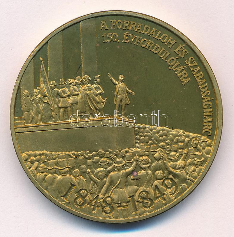 1998. "A forradalom és szabadságharc 150. évfordulójára / 56-os Magyarok Világszövetsége" aranyozott fém emlékérem (42,5mm) T:UNC,AU (eredetileg PP) kis fo.