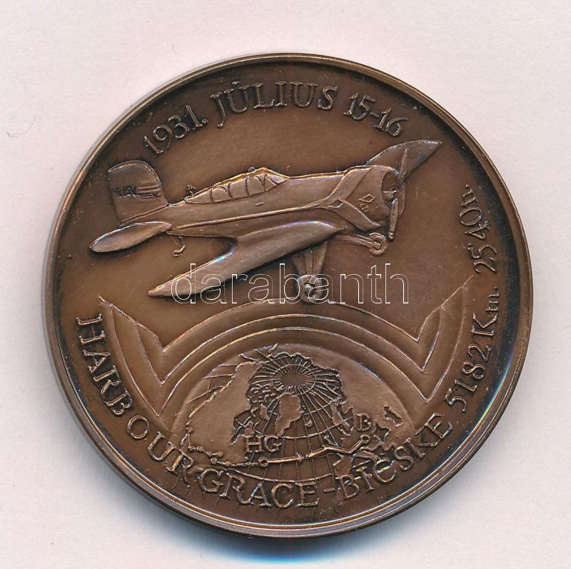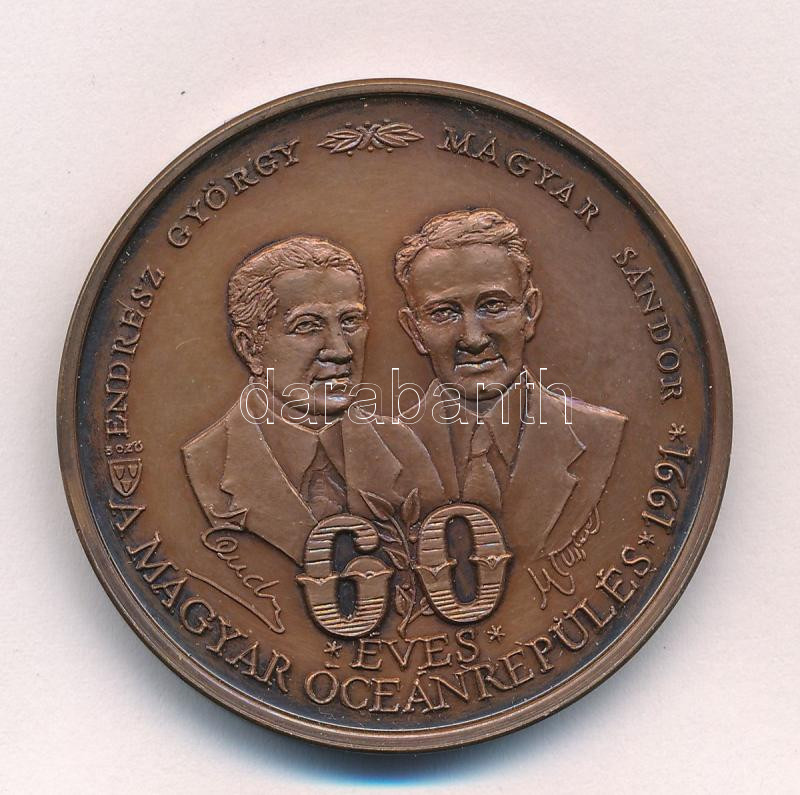 Bozó Gyula (1913-2004) 1991. "60 éves a magyar óceánrepülés Endresz György - Magyar Sándor / Harbour Grace - Bicske" kétoldalas bronz emlékérem (42,5mm) T:UNC