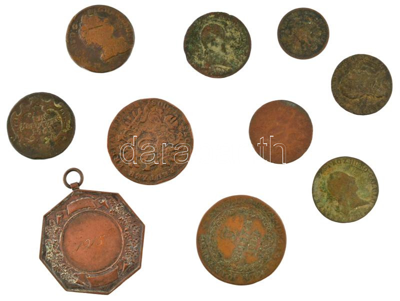 Beschreibung: 10db-os, főleg Habsburg krajcárból álló tétel, közte 1761K 1kr Cu "Mária Terézia" + 1812E 1kr Cu "I. Ferenc" T:F,VG