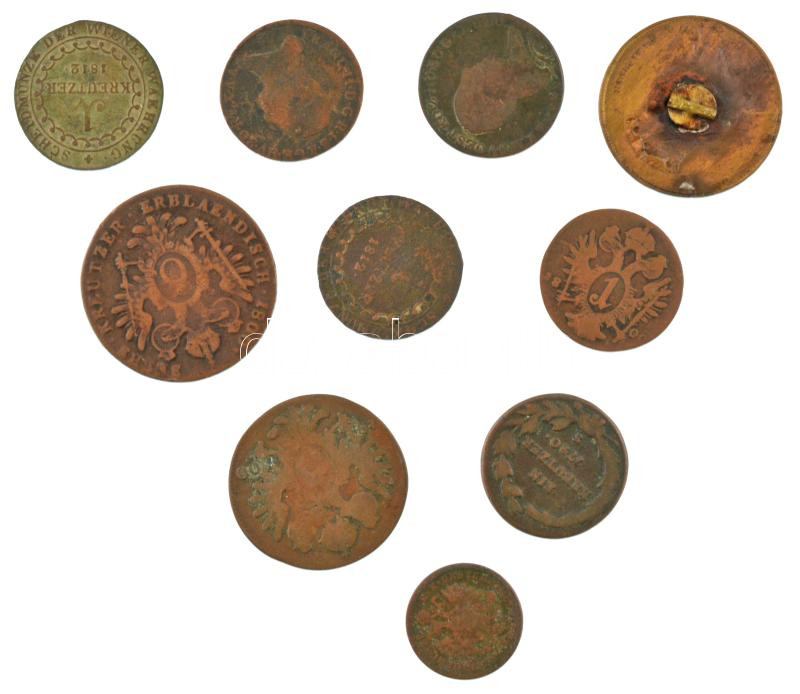 Beschreibung: 10db-os, főleg Habsburg krajcárból álló tétel, közte 1812O 1kr Cu "I. Ferenc" + 1859E 1kr Cu T:F,VG