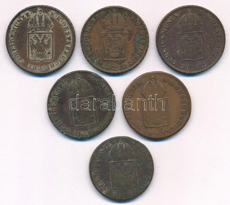 Beschreibung: 1816. 1kr Cu (6db, ebből 3db A-verdejellel, 2db B-verdejellel, 1db S-verdejellel) T:VF,F