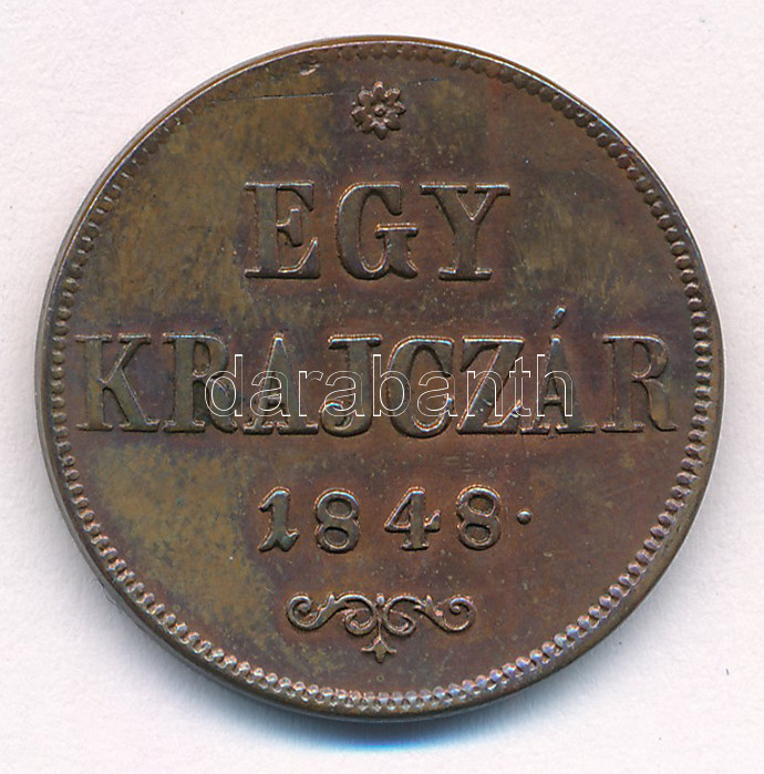 Adamo B1 https://www.darabanth.com/de/454-Fernauktion/454.0/Numismatik/Ungarische-Munzen-und-Munzen-mit-ungarischem-Munzzeichen~2000008/1848-1kr-Cu-TAU-XF--Adamo-B1~II3021500