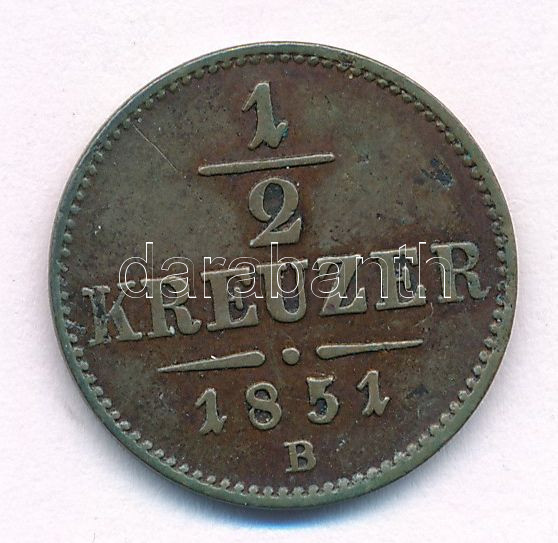 Beschreibung: 1851B 1/2kr Cu T:XF,VF