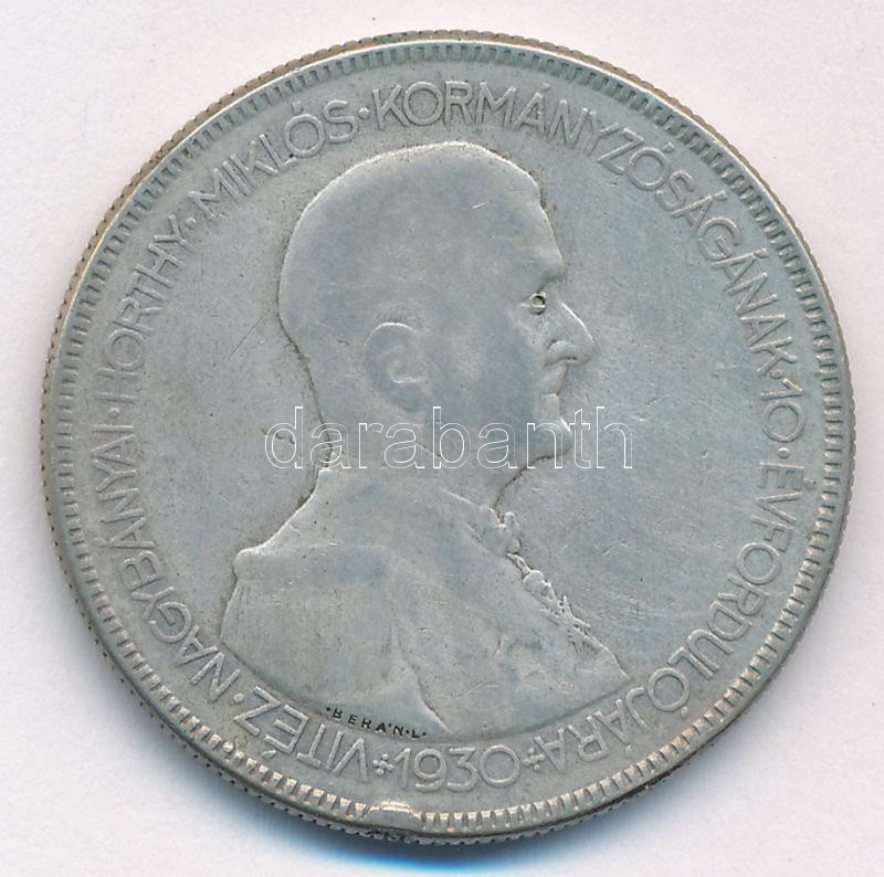 1930. 5P Ag "Horthy jobbra" T:F Adamo P8 https://www.darabanth.com/de/454-Fernauktion/454.0/Numismatik/Ungarische-Munzen-und-Munzen-mit-ungarischem-Munzzeichen~2000008/1930-5P-Ag-Horthy-jobbra-TF-Adamo-P8~II2946052