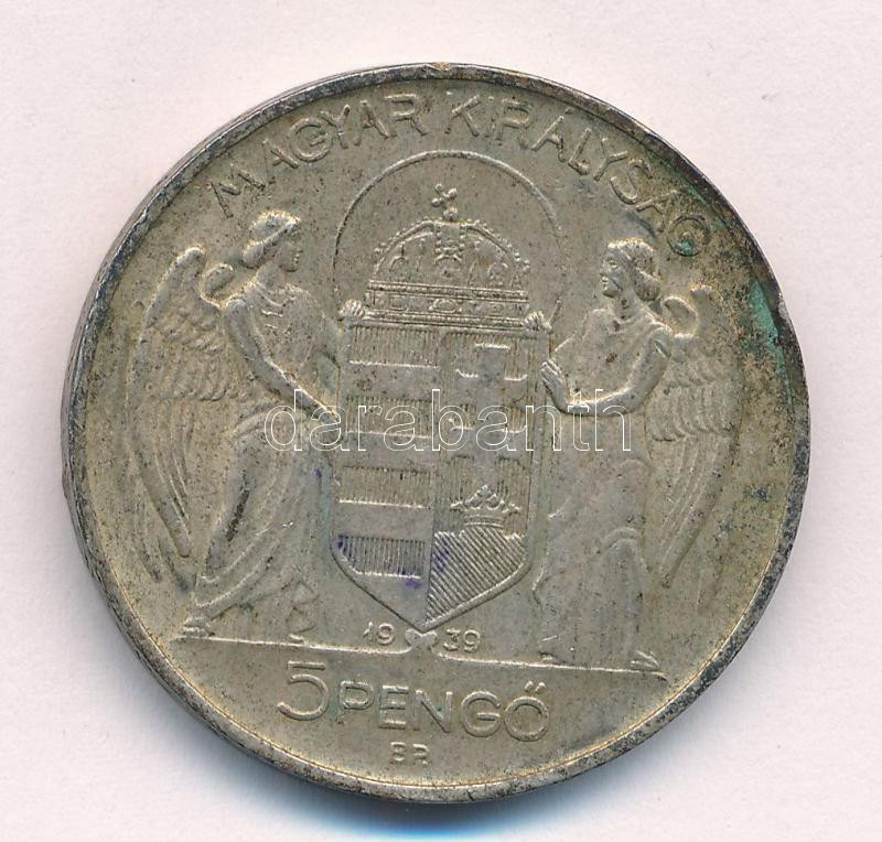 1939. 5P Ag "Horthy balra" T:XF,VF ph., patina Adamo P8.2 https://www.darabanth.com/de/454-Fernauktion/454.0/Numismatik/Ungarische-Munzen-und-Munzen-mit-ungarischem-Munzzeichen~2000008/1939-5P-Ag-Horthy-balra-TXF-VF-ph-patina-Adamo-P82~II3027241