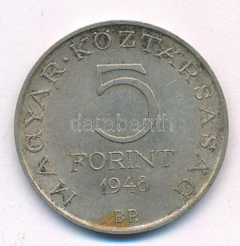 1948. 5Ft Ag "Petőfi" T:XF patina Adamo EM1 https://www.darabanth.com/de/454-Fernauktion/454.0/Numismatik/Ungarische-Munzen-und-Munzen-mit-ungarischem-Munzzeichen~2000008/1948-5Ft-Ag-Petofi-TXF-patina-Adamo-EM1~II3024361