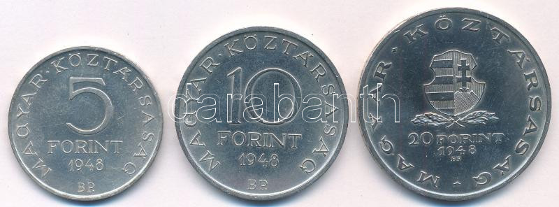 1948. 5Ft Ag "Petőfi" + 10Ft Ag "Széchenyi" + 20Ft... https://www.darabanth.com/de/454-Fernauktion/454.0/Numismatik/Ungarische-Munzen-und-Munzen-mit-ungarischem-Munzzeichen~2000008/1948-5Ft-Ag-Petofi-plus-10Ft-Ag-Szechenyi-plus-20Ft-Ag-Tancsics-Szabadsagharc-sor-TAU-ph-Ad~II3025411