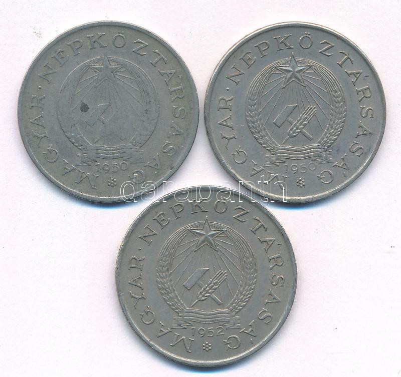 1950-1952. 2Ft Cu-Ni (3x) T:XF,VF https://www.darabanth.com/de/454-Fernauktion/454.0/Numismatik/Ungarische-Munzen-und-Munzen-mit-ungarischem-Munzzeichen~2000008/1950-1952-2Ft-Cu-Ni-3x-TXF-VF~II3026566