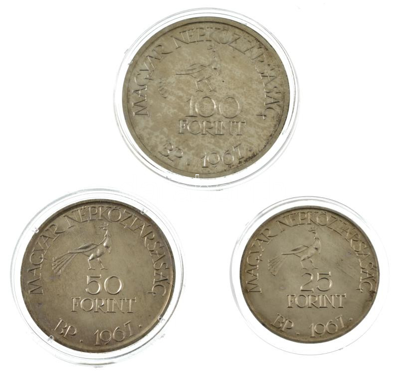 1967. 25Ft Ag + 50Ft Ag + 100Ft Ag "Kodály sor" T:BU kis pat... https://www.darabanth.com/de/454-Fernauktion/454.0/Numismatik/Ungarische-Munzen-und-Munzen-mit-ungarischem-Munzzeichen~2000008/1967-25Ft-Ag-plus-50Ft-Ag-plus-100Ft-Ag-Kodaly-sor-TBU-kis-patina-Adamo-EM22-EM23-EM24~II3029828