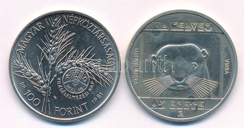 Beschreibung: 1981. 100Ft Ni "FAO" kapszulában + 1985. 100Ft Cu-Ni-Zn "Természetvédelem - Vidra" kapszulában T:UNC