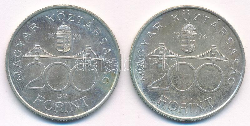 1993. 200Ft Ag "MNB" + 1994. 200Ft Ag "Deák" T:AU,... https://www.darabanth.com/de/454-Fernauktion/454.0/Numismatik/Ungarische-Munzen-und-Munzen-mit-ungarischem-Munzzeichen~2000008/1993-200Ft-Ag-MNB-plus-1994-200Ft-Ag-Deak-TAU-XF-patina-Adamo-F13-F131~II3026915