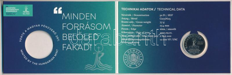 Beschreibung: 2021. 50Ft Cu-Ni "52. Nemzetközi Eucharisztikus Kongresszus" első napi veret számozott emléklapon "06895" T:UNC