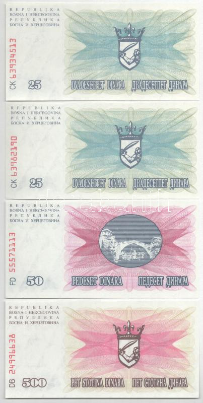 Bosznia-Hercegovina 1992. 25D (2x) + 50D + 500D T:UNC,AU