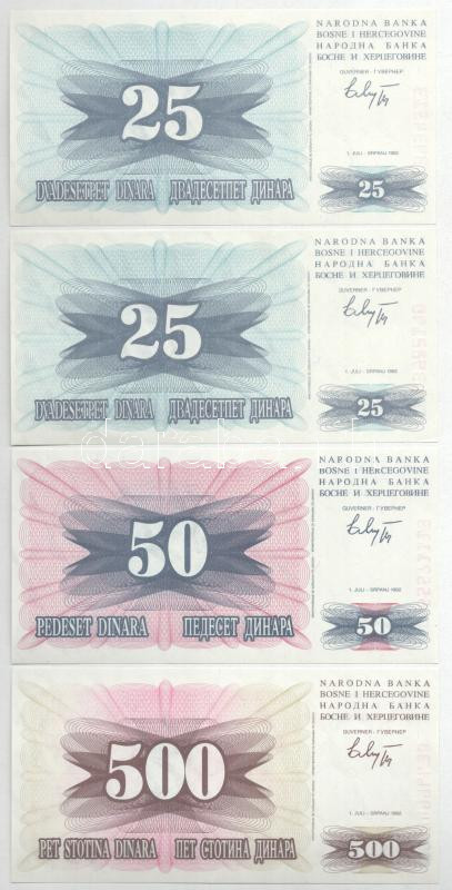 Bosnia-Hercegovina 1992. 25 Dinara (2x) + 50 Dinara + 500 Dinara C:UNC,AU