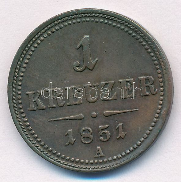 Ausztria 1851A 1kr Cu T:AU,XF ph. Austria 1851A 1 Kreuzer Cu C:AU,XF e... https://www.darabanth.com/de/454-Fernauktion/454.0/Numismatik/Weltweit-Munzen~2000015/Ausztria-1851A-1kr-Cu-TAU-XF-ph-Austria-1851A-1-Kreuzer-Cu-CAU-XF-edge-error-Krause-KM232185~II3025032