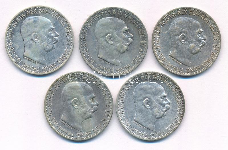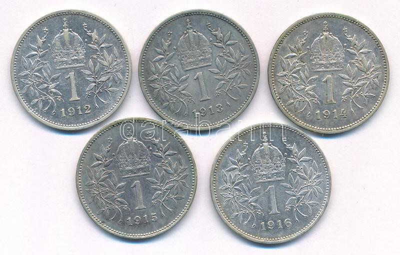 Ausztria 1912-1916. 1K Ag "Ferenc József" (5xklf) T:AU,XF pa... https://www.darabanth.com/de/454-Fernauktion/454.0/Numismatik/Weltweit-Munzen~2000015/Ausztria-1912-1916-1K-Ag-Ferenc-Jozsef-5xklf-TAU-XF-patina-Austria-1912-1916-1-Corona-Ag-F~II3015362