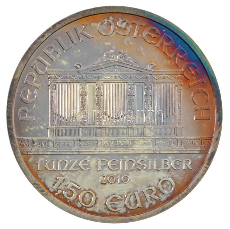 Austria 2010. 1 1/2 Euro Ag "Vienna Philharmonics" in hardcase C:BU patina, fingerprints