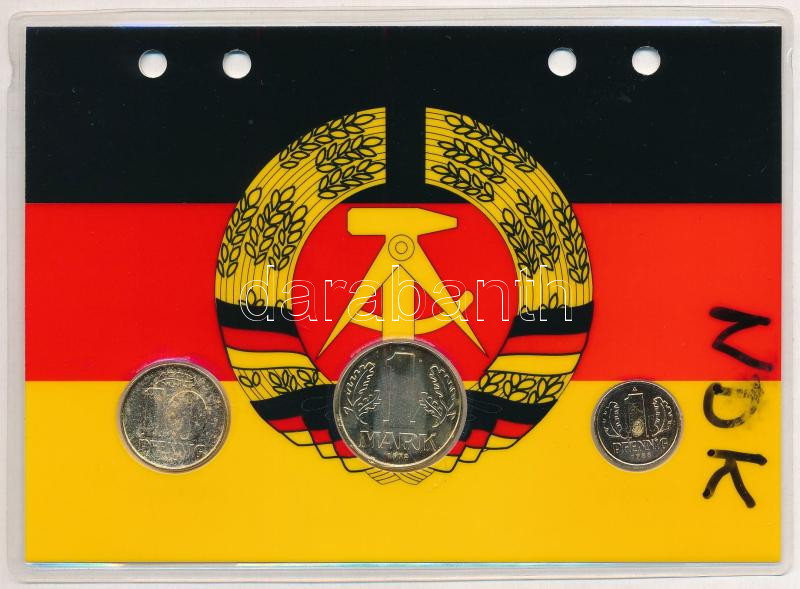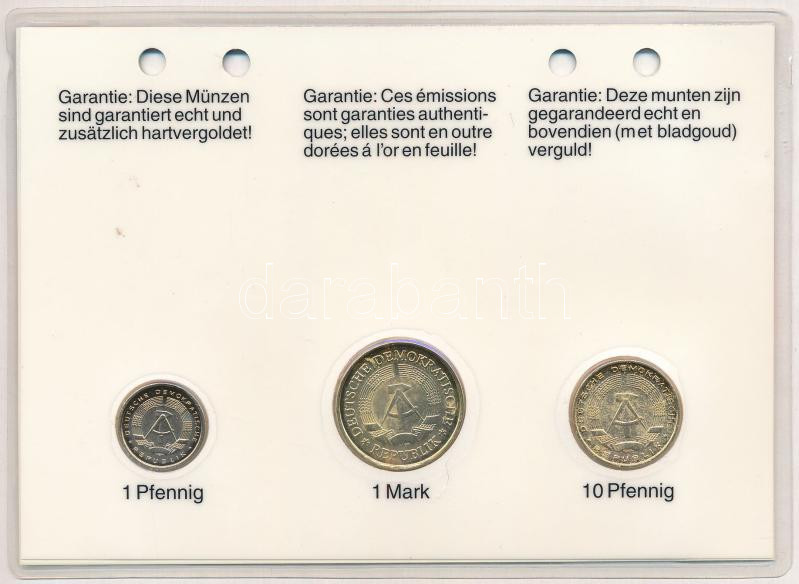 NDK 1967-1988. 1pf-1M aranyozva (3xklf) díszlapon T:AU GDR 1967-1988. 1 Pfennig - 1 Mark gilt (3xdiff), on decorative cardboard sheet C:AU
