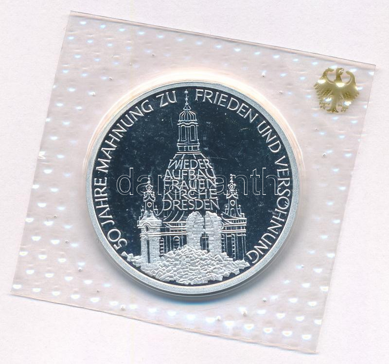 Németország 1995J 10M Ag "A drezdai Frauenkirche megsemmisülésének 50. évfordulója" zárt fólia csomagolásban, tanúsítvánnyal T:PP Germany 1995J 10 Mark Ag "50th Anniversary of the destruction of Frauenkirche in Dresden" in closed foil packing with certificate C:PP Krause KM#185