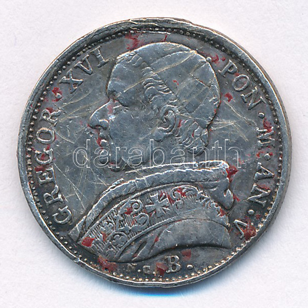 Olasz Államok / Pápai Állam 1835B 20B Ag "XVI. Gergely" T:VF ph., patina Italian States / Papal State 1835B 20 Baiocchi Ag "Gregorius XVI" C:VF edge error, patina Krause KM#1322