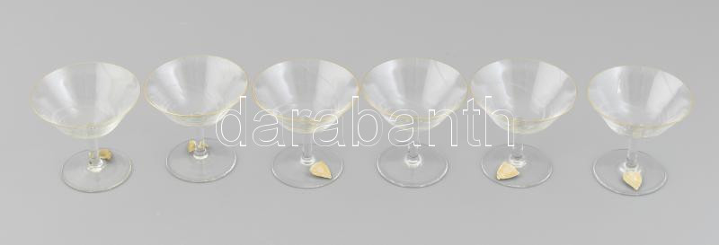 Beschreibung: 6 db talpas likőrös, csiszolt üveg pohár, hibátlan, m: 7 cm
