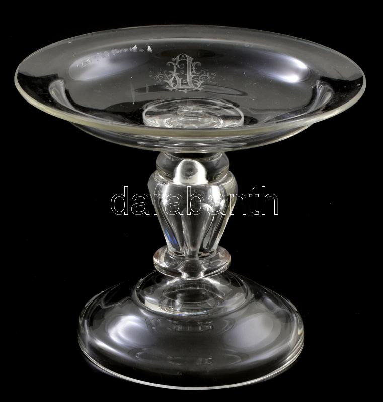 Süteményes üveg kínáló. Formába öntött, monogramos d: 19 cm, m: 16 cm https://www.darabanth.com/de/454-Fernauktion/454.0/Porzellan-Keramik-Glass/Glaser~500007/Sutemenyes-uveg-kinalo-Formaba-ontott-monogramos-d-19-cm-m-16-cm~II3027746