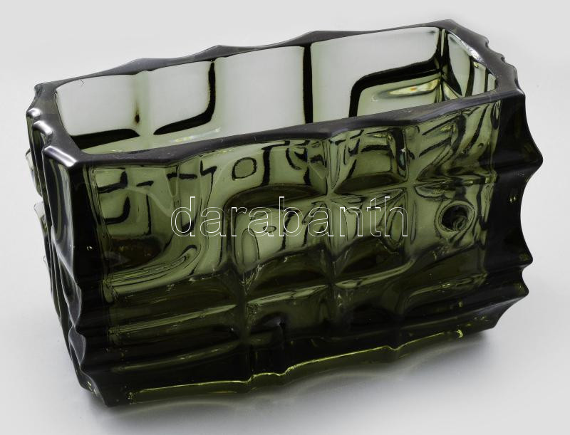 Beschreibung: Vladislav Urban (1937-2022), Sklo Union: Design üveg váza. cca 1960, öntött, anyagában színezett üveg. Jelzés nélkül, hibátlan, 20x9x12 cm