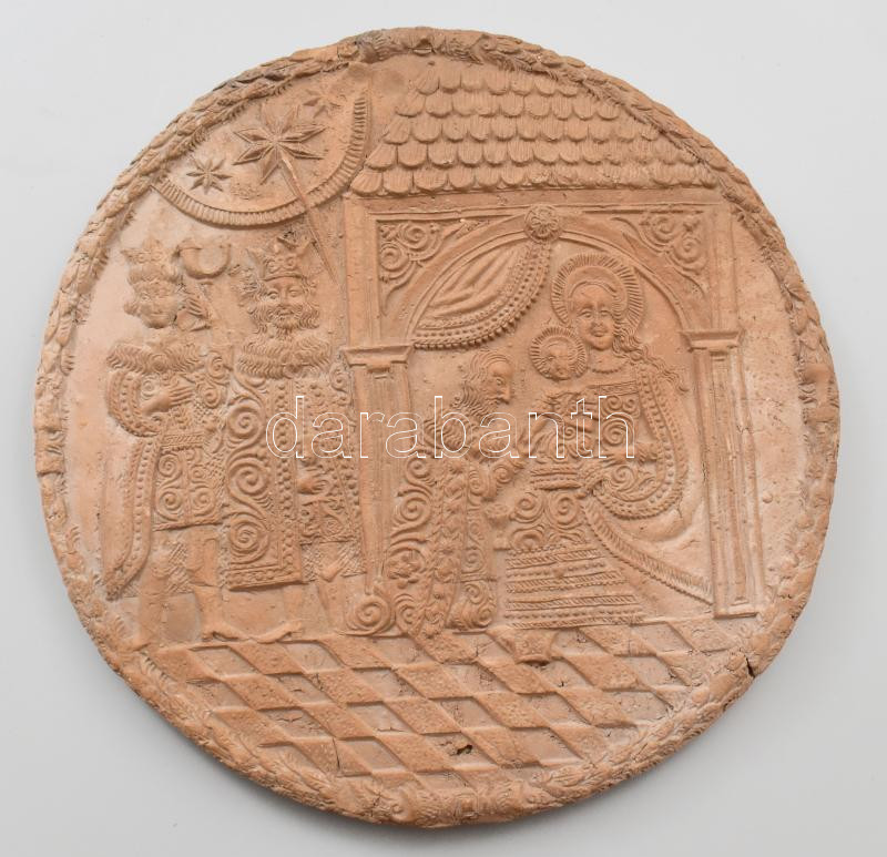 Háromkirályok imádása Terrakotta fali dísz. Múzeumi másolat d: 28 cm https://www.darabanth.com/de/454-Fernauktion/454.0/Porzellan-Keramik-Glass/Keramiken~500005/Haromkiralyok-imadasa-Terrakotta-fali-disz-Muzeumi-masolat-d-28-cm~II3023165