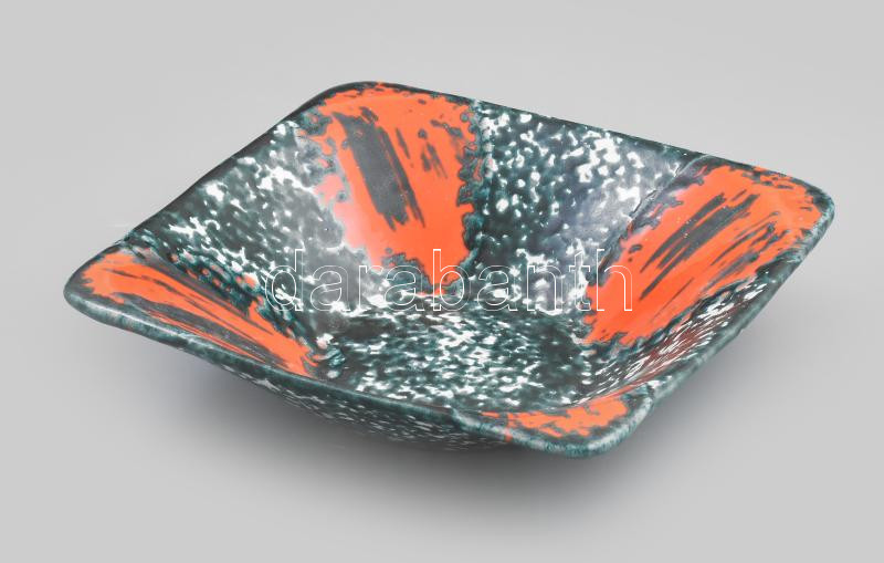 Beschreibung: Magyar iparművész mázas kerámia dísztál. Kézzel festett, jelzett, kis mázrepedéssel 22x22 cm