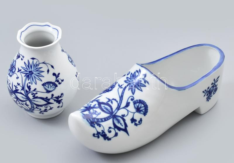 2 db hagyma és holland mintás tárgy: Triptau váza 12 cm, papucs 21 cm https://www.darabanth.com/de/454-Fernauktion/454.0/Porzellan-Keramik-Glass/Porzellan~500006/2-db-hagyma-es-holland-mintas-targy-Triptau-vaza-12-cm-papucs-21-cm~II3026327