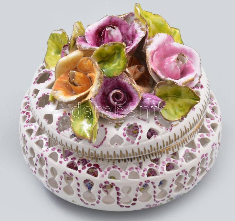 Áttört porcelán bonbonniere. Kézzel festett, jelzett, virágokon kis le... https://www.darabanth.com/de/454-Fernauktion/454.0/Porzellan-Keramik-Glass/Porzellan~500006/Attort-porcelan-bonbonniere-Kezzel-festett-jelzett-viragokon-kis-lepattanasokkal-d-13-cm~II3026204