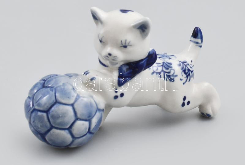 Delft labdával játszó macska. Sorszámmal jelzett, hibátlan, h: 10,5 cm... https://www.darabanth.com/de/454-Fernauktion/454.0/Porzellan-Keramik-Glass/Porzellan~500006/Delft-labdaval-jatszo-macska-Sorszammal-jelzett-hibatlan-h-10-5-cm-m-6-5-cm~II3000117