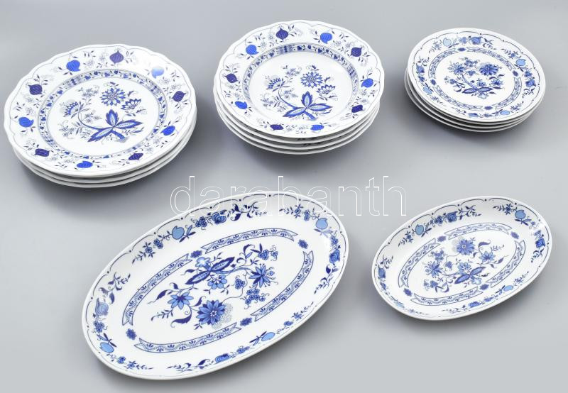 Beschreibung: Ilmenau, kék hagymamintás 4 személyes étkészlet + 2 db húsos tál, jelzett, hibátlan,