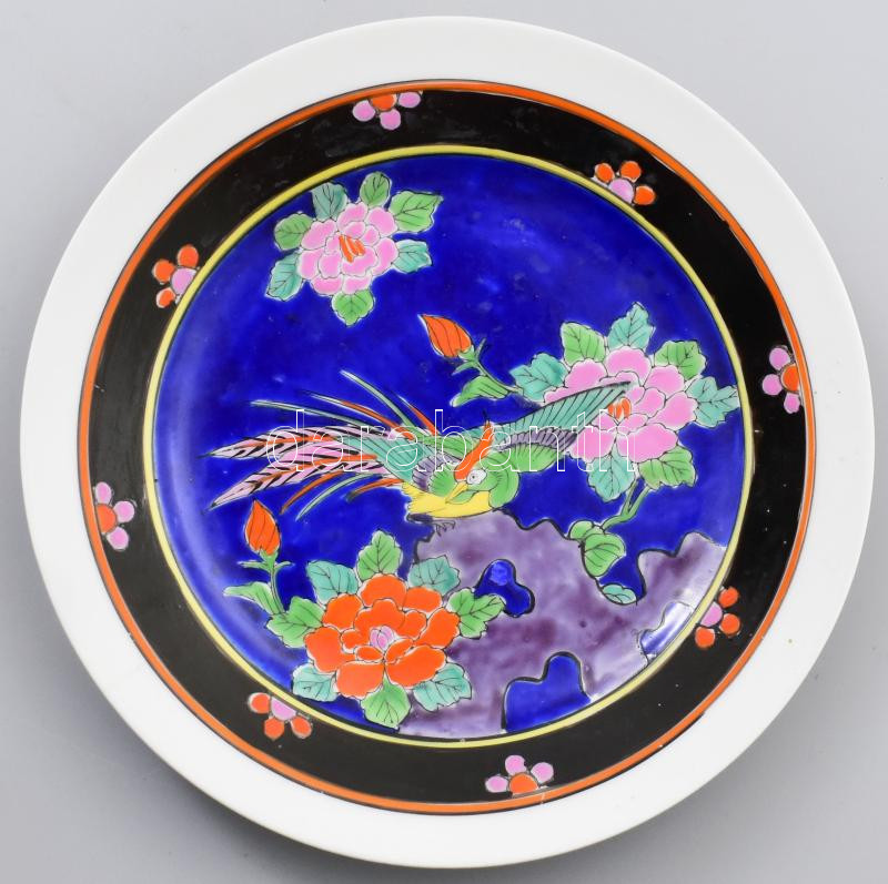 Beschreibung: Madár mintás, kínai kézzel festett porcelán dísztányér. Jelzett. Mázrepedéssel, kopással. d: 21,5 cm