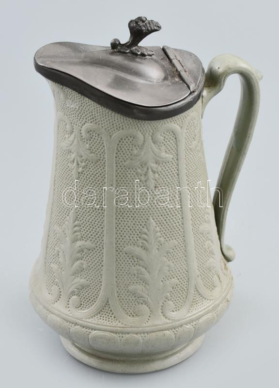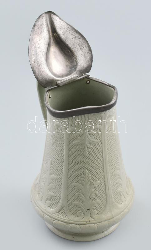 Beschreibung: cca 1880-1890 Angol porcelán sótároló, opalinüveget utánzó porcelán, jelzés nélkül, ón fedővel, kis kopással, m: 18 cm